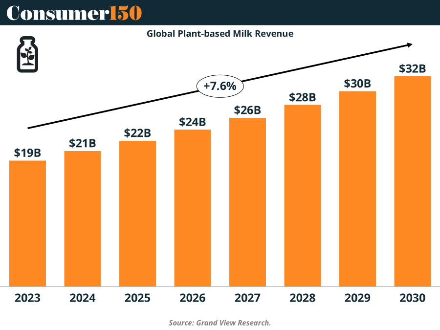 Globally, plant-based milk is on a tear—climbing from $19B in 2023 to an expected $32B in 2030, thanks to health trends, vegan diets, and eco-marketing. But in the U.S., the alt-milk party just hit a wall: total sales are down, and almond, soy, and even oat milk are losing steam. The new winner? Lactose-free dairy, growing despite being 3.7% more expensive. Maybe the next milk war won’t be about plants—it’ll be a rematch with better enzymes. (More)